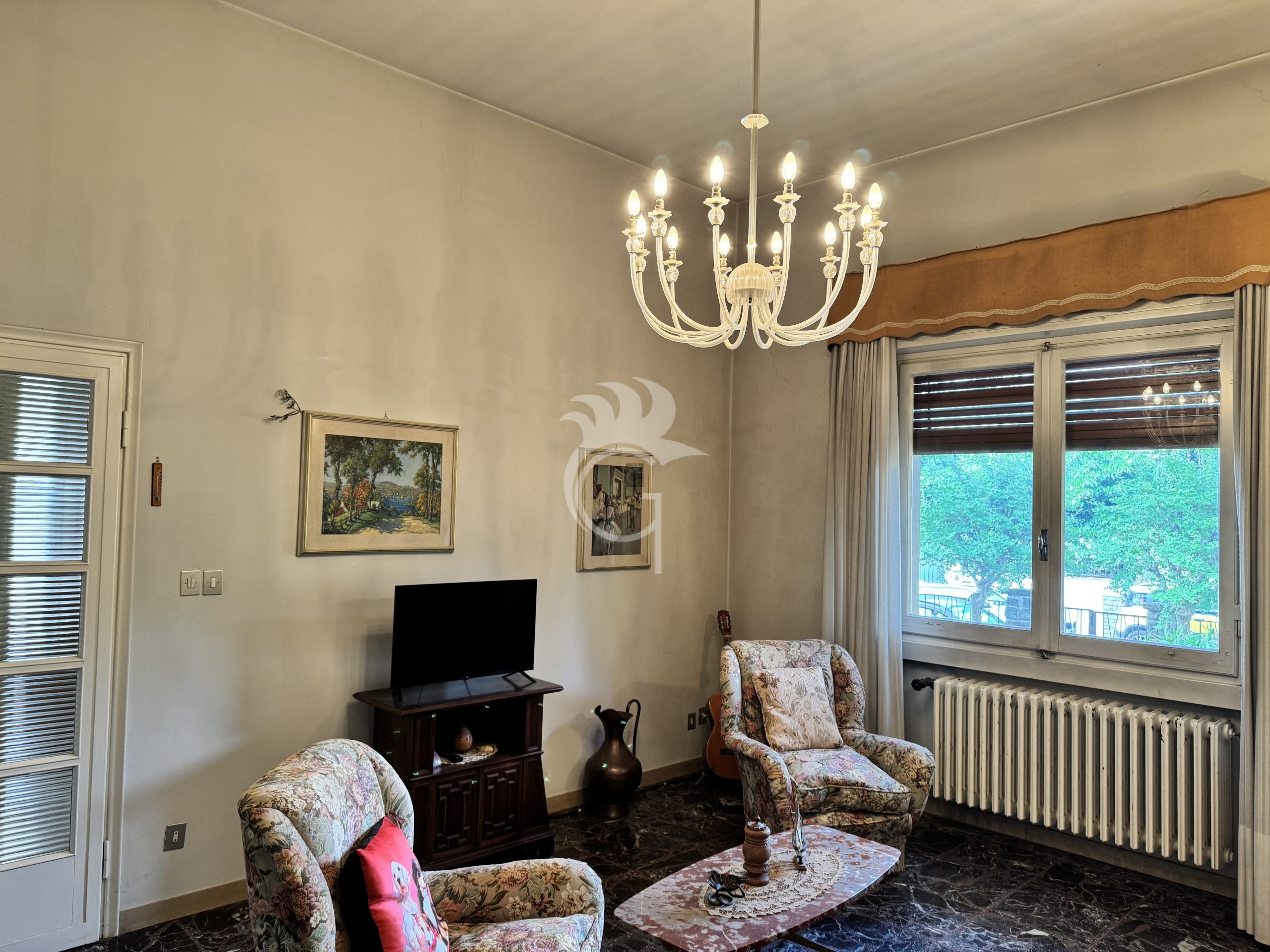 ESCLUSIVA DUE STRADE INTERNO vicino al POGGIO IMPERIALE vendiamo una villetta libera su quattro lati disposta su due livelli con giardino, cantina e garage. L’immobile è stato edificato a metà degli anni ’50 ed è così diviso: al piano terreno rialzato si raggiunge attraverso una loggia d’ingresso l’unità immobiliare a civile abitazione che si compone di un grande ingresso su cui affacciano una sala con veduta sulla parte del giardino di ingresso, un soggiorno anch’esso verso il fronte dell’edificio, la cucina molto grande con un ampia finestra che permette l accesso ad un terrazzo di oltre 30 mq. che gode del tramonto ed una bella vista nel verde dei giardini retrostanti. Le camere attualmente sono 2 matrimoniali molto grandi ed il bagno ( una vera e propria stanza da bagno) dotato di vasca e finestra. Insiste sempre a questo piano una stanza ad uso studio do ve sono collocate la botola per l accesso al piano del sottotetto che prende tutta la casa e che ha il suo culmine sopra l’ingresso e le scale che ci conducono al piano seminterrato delle grandissime cantine ( tutte finestrate e dotate di bagno ) ed al garage doppio. Sia le cantine che il garage hanno anche dei propri accessi dall’esterno. Tutta la casa è circondata dal proprio giardino di circa 500mq in parte a verde ed alberi. La casa è dotata di utenze di luce acqua e gas e necessita di lavori di adeguamento.
